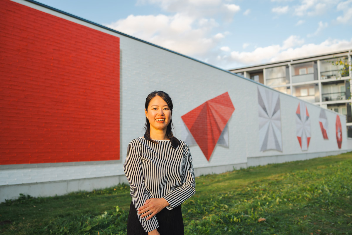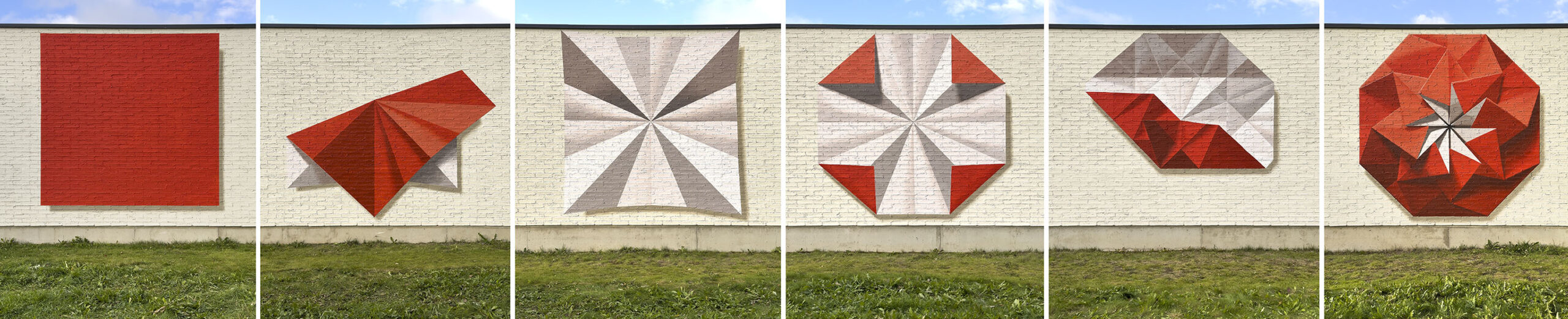 Momo Yoshino tutkii paikkasidonnaisessa taiteessaan maalauksen ja tilan välistä suhdetta. Saapuessaan Suomeen häntä hämmästytti lentokoneen ikkunasta avautuva näkymä: tasainen maa ja lukemattomat järvet, jotka täplittivät maisemaa. Avara ja litteä maisema toi hänelle mieleen origamiarkin, joka taittuessaan kätkee sisäänsä monia muotoja.