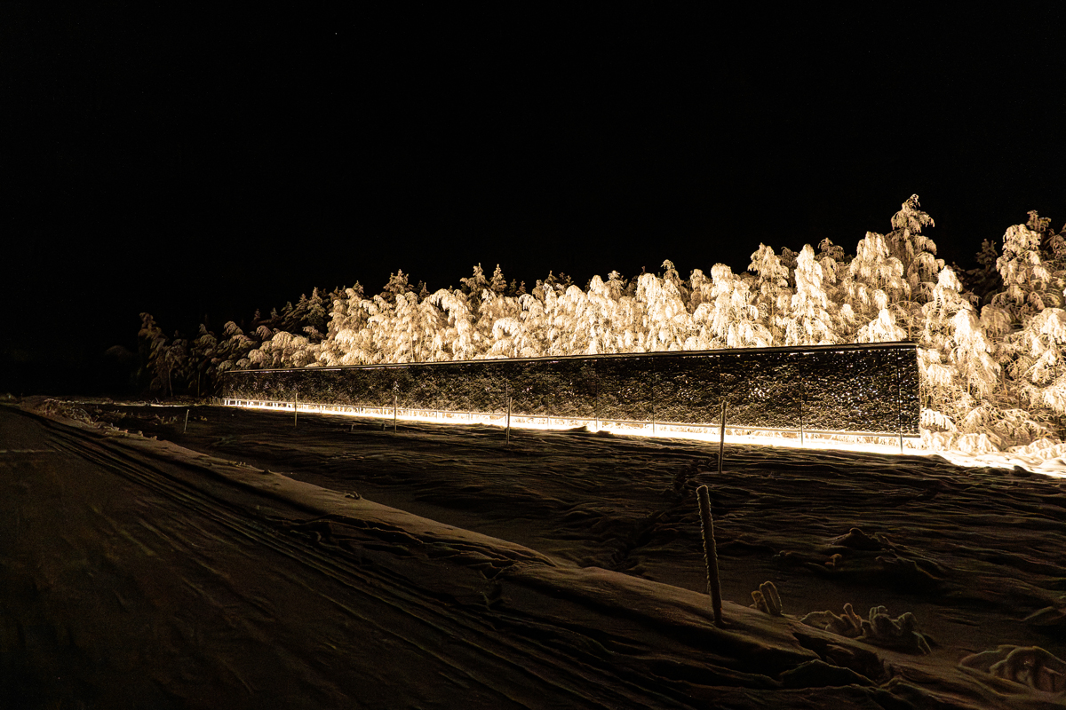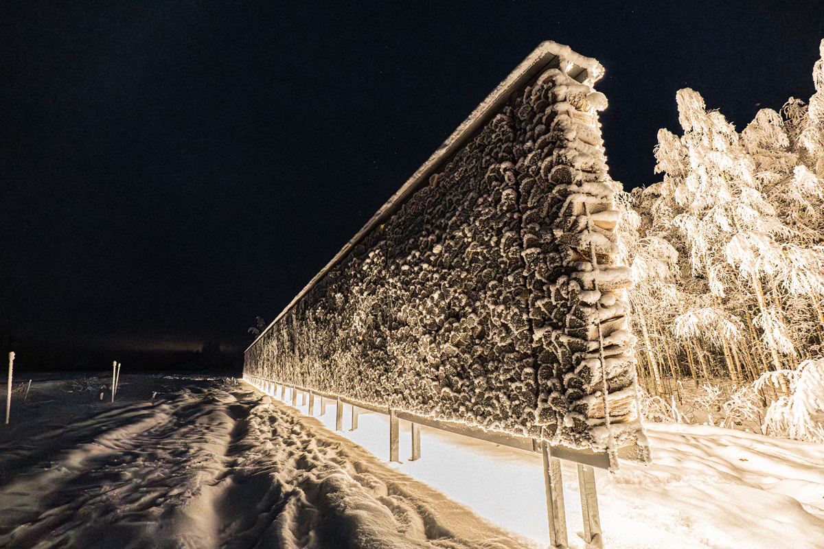 Tuulipuiston keskimääräinen energiantuotanto tunnissa vastaa 94 mottia koivuhalkoja, joista muodostuu yli 60 metriä pitkä ja kolme metriä korkea halkopino. Kevyen rakenteen varaan nostettu kokonaisuus näyttää kaukaa katsottuna levitoivan ilmassa. Pimeän aikaan teos valaistaan takaapäin, jolloin se hahmottuu siluettimaisena, vain halkojen välistä siilautuvan valon päästessä läpi.